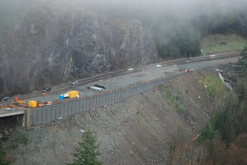 | MSE wall construction at the Larsen Creek/ Cut 6 area |