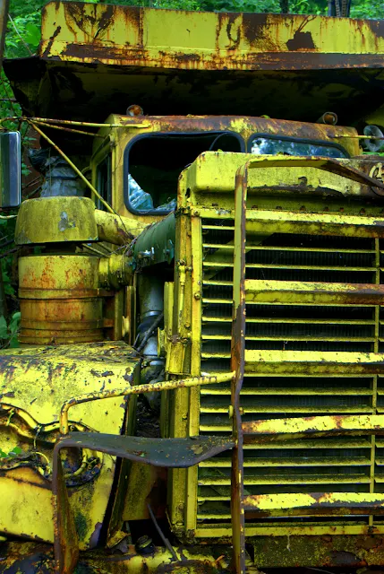 Heavy duty off-highway logging truck converted to a dump truck...one of the essential tools of logging road construction. It's so ugly that it has become beautiful.