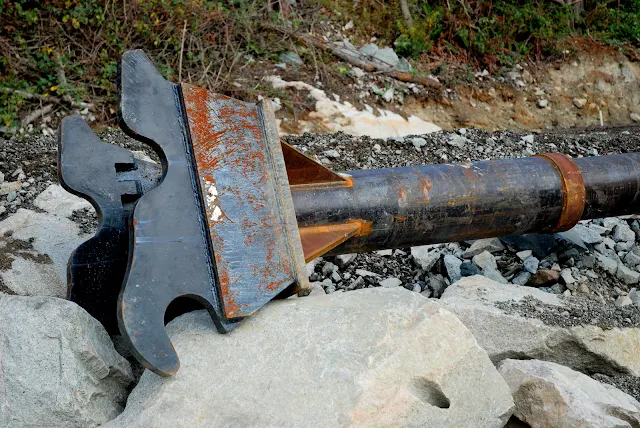 6. If it looks like the whole hillside is going to come down, retreat and re-think. You might have to go to hand scaling and explosives. ( please use experienced professionals for this, you don't want to be on the YouTube Gong Show for the rest of your life )